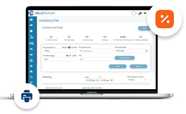 To have an accurate account, all costs associated with the vehicle must be taken into account during the calculation process, which is done for you through the HillzDealer.